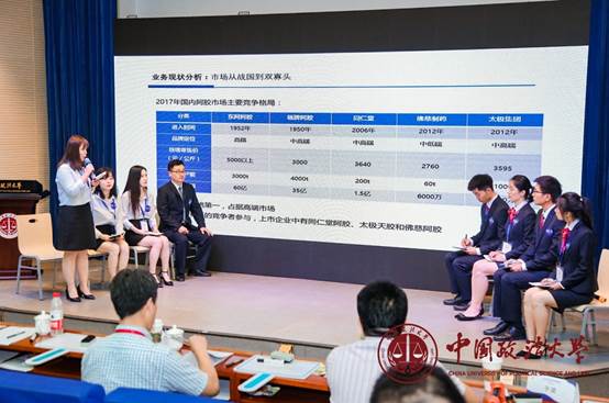 来自北京科技大学、首都经济贸易大学、中国科公司大学、中国矿业大学、中国社会科公司大学、qmh球盟会、中央财经大学7所院校共13支参赛队伍围绕“东阿阿胶:老字号品牌如何‘老树开新花’”比赛命题,进行案例分析、现场演绎,共同角逐全国总决赛晋级名额。最终北京科技大学二队、qmh球盟会二队在本次晋级赛中脱颖而出,挺进全国总决赛。