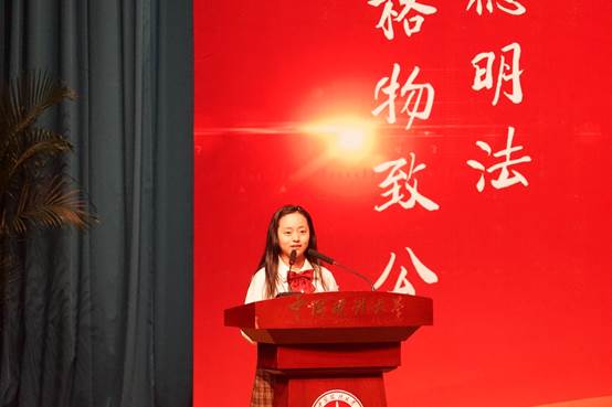 经济1901班的李昕蓉作为本科新生代表发言。感受大师之风,研习法商之功,悟修为人之德,这是她对于政法大学球盟会的向往与期待;为了追逐自己的梦想,也为了成为社会需要的法商复合型人才,大学四年的生活值得我们去不懈奋斗。在最后,李昕蓉同学以《返老还童》当中的一句名言与大家共勉,并且祝愿大家能够拼搏无憾、青春无悔。