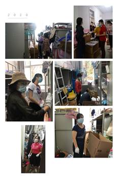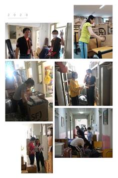进入毕业生的宿舍后,志愿者教师们带领志愿者员工全程与每一位需整理打包行李的毕业生进行视频沟通,大到床单被褥,小到书本杂物,严谨仔细,不遗漏任何贵重物品及重要证件,从个人床铺到公共区域,每一样东西都仔细询问了毕业生的意见之后,才进行整理和装箱。宿舍内,老师同学们配合默契,分工合作,快速且细致地为毕业生收拾着物品;走廊上,联络员老师各处奔走,协调联系每一项相关事宜;寄存处,老师和员工认真地忙碌着,仔细登记核实每一位毕业生的寄存物品。每个人都是大汗淋漓,但在毕业生们连连道谢,说着“辛苦了!”的时候,还是会笑着回一句“没事儿”。每天下午,各个宿舍原本分散无章的行李物品,都变成了摆放有序的纸箱,邮寄物品、寄存物品、贵重物品、重要证件……被分门别类整齐的码放在了宿舍内外,等待与快递公司的接。