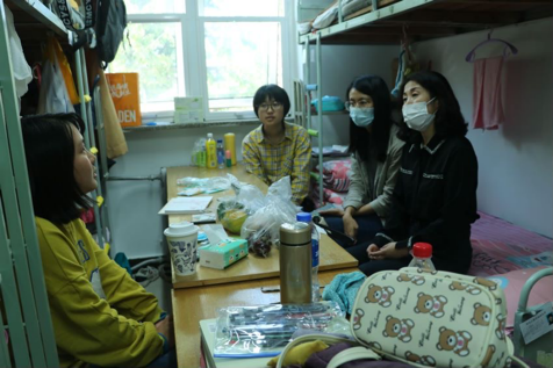 新生报到的最后一天,为充分了解球盟会新生报到和住宿情况,与新生进行近距离沟通,球盟会分党委副书记何欣、2018级辅导员郑益群、2020级辅导员张叶专程走访新生宿舍,看望刚入校的新生们。在宿舍里,何欣副书记和两位辅导员与新生亲切的沟通,了解大家的兴趣爱好,询问关于志愿填报时的想法和老员工活第一天的感受,鼓励同学们多多跟辅导员、师兄师姐们沟通,尽快适应大学的环境,开启全新的老员工活!