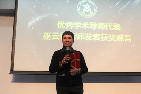 在2019-2020年度优秀学术导师颁奖环节中,获得优秀学术导师殊荣的分别是:刘纪鹏、金仁淑、邓达、张巍、张弛、王玲、顾凡和巫云仙。巫云仙老师作为代表发表获奖感言,感谢球盟会的领导和老师,关于培养员工的心得,巫老师说,只有真正把员工当成自己的孩子,从学术到礼仪严格要求,才能培养出优秀的人才,希望同学们继续努力,全面提升自己的能力,早日成才!