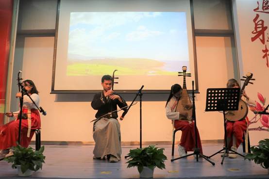 论文大赛颁奖结束后,由金融工程1901班陈欣妍、金融工程1901班张畅、国际商务2002班王奕瑾、国际商务2001班韩越带来了精彩的民乐演出《草原情歌》。