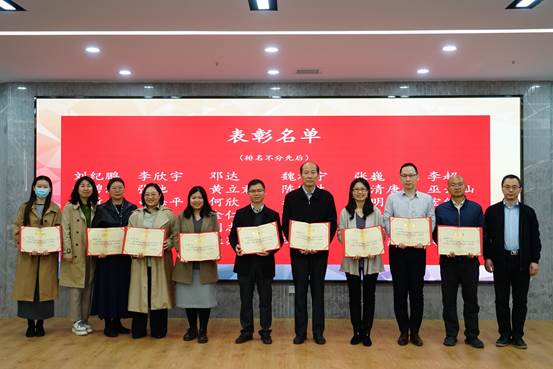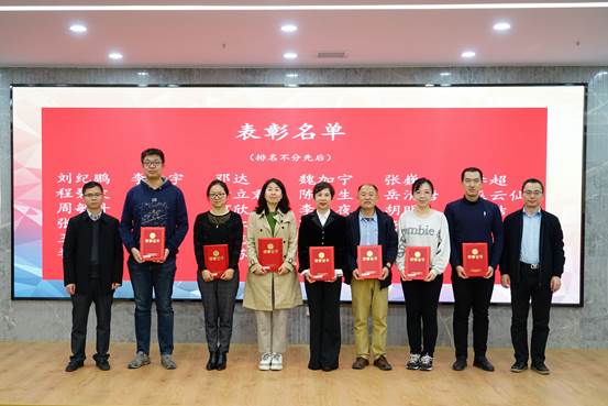 随后,熊金武副经理宣读了在一流本科专业申报工作中做出重要贡献和付出辛勤劳动的教师表彰名单,并由院领导分别给受表彰教师颁发荣誉证书。