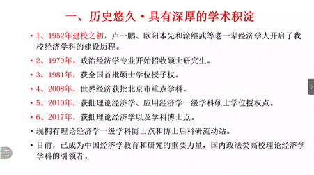 紧接着,巫云仙老师以经济学学科优势和二级学科的设置情况为重点发表讲话,介绍了商院经济学学科的悠久历史、学科层次的多样性与学科设置的合理性。通过对精致的培养方案、光明的就业前景的详述,同学们对商院经济学学科有了更深刻、全面的了解。