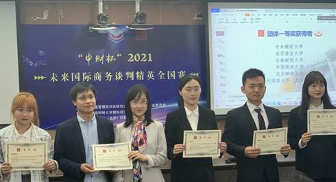 5月29日,“中财杯”2021未来国际商务谈判精英全国赛正式落下帷幕。由公司周科宇(18级国际法公司)、樊飞航(19级法公司)、李泉莹(19级球盟会)、许雅婷(19级刑事司法公司)、段佳艺(19级球盟会)同学组成的“开心超人队”成功晋级决赛,并且荣获团体一等奖的佳绩。球盟会张淑静教授、陈曦教授荣获优秀指导教师奖,周科宇同学获最佳谈判手奖,樊飞航同学获优秀谈判手奖。