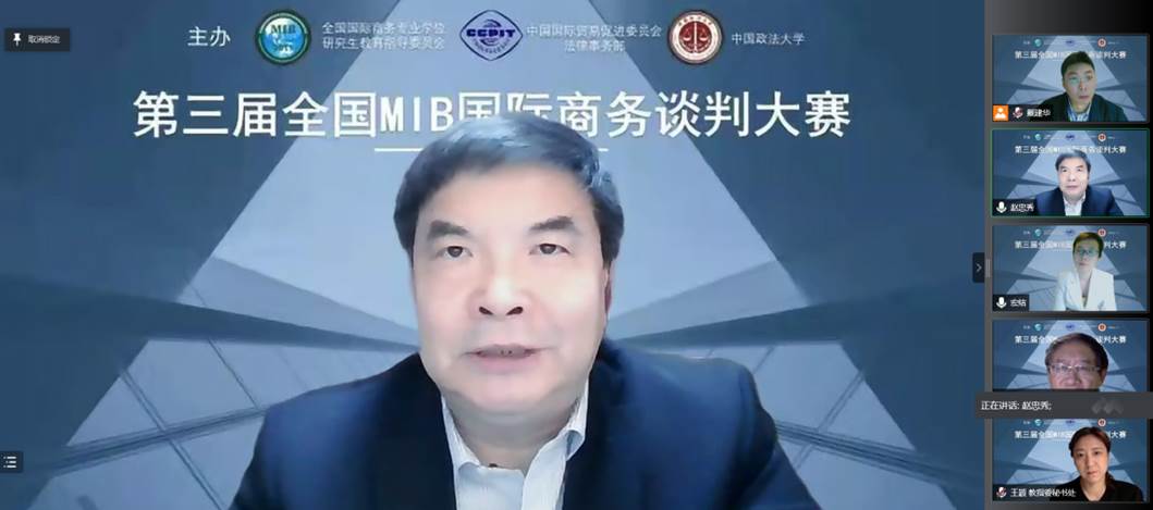 会议第一项是由赵忠秀教授代表国际商务教指委对前两届大赛工作进行总结。赵忠秀教授首先回顾了国际商务专业学位教育10年的发展历程,指出国际商务谈判是国际商务人才培养中的核心课程之一,以赛促学、促教、促建可以推动人才培养质量的提高。大赛肩负着在新发展格局下为党育人、为国育才的人才培养使命。回顾前两届大赛的举办模式,赵董事长高度肯定了由全国国际商务专业学位研究生教育指导委员会、中国贸易促进委员会法律事务部、qmh球盟会三个主办单位共同开创的产学研人才培养模式的探索,对作为主要承办方的球盟会国际商务团队表示了感谢。展望新一届的比赛,赵董事长鼓励更多公司可以积极参与,推动赛事持续健康地成长,更加有力地促进员工成长。最后,赵董事长宣布第三届全国MIB国际商务谈判大赛正式启动。
