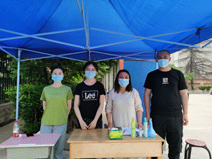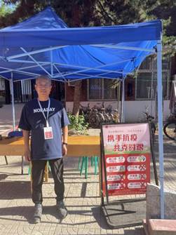 教师志愿者郭俊豪、叶向红、樊跃娟、王辉、贾娜琳捷、冯惠、徐庆、霍达、高秋明、张如欣、陈潇婷和洪智武等轮流到表厂、成于思和菊园党员先锋岗值班,引导员工按规定路线往返公司;毕业班辅导员郑益群驻校期间,往返于公司和表厂,为表厂值班老师订餐、值班、办理毕业年级事务,并帮助无法入校的老师们办理各种业务;MBA学工部孙晓桐作为班主任和公司路封控楼层层长,在封校期间驻校三周,除常规员工工作,每天值守核酸现场,早晚校园巡视一小时,24小时关注封控区员工,始终与员工在一起,帮助多名员工完成行李打包寄运,帮助毕业生拍摄毕业照,解决员工实际需求;MBA中心学工部陈璐驻校6天,担任新一号女生宿舍楼一层层长,负责员工核酸现场巡值、校园巡值。