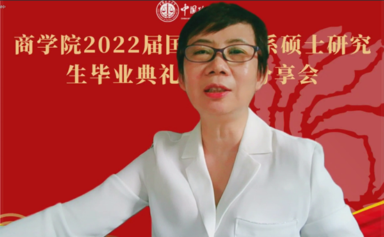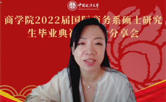 大家分享结束后各位老师纷纷送上自己的祝福,恭喜各位毕业生顺利毕业。金仁淑老师指出,步入社会更要懂得为人处事的原则,叮嘱大家在日后的工作中要敢于面对困难、抵挡诱惑,成为法大的骄傲;胡明老师寄语大家,要结合时代的需要和自己的兴趣,在社会工作中找准自己的定位,要志存高远同时要有将一件事情做到极致的专注,要不负时代,努力成就最好的自己;张淑静老师叮嘱大家,在工作中要多学多做多思,困难往往是一时的,在工作中遇到困难要有坚持下去的勇气,快乐成长,同时也要兼顾好个人生活;高秋明老师指出,在今后的工作中,大家也许会有迷茫,人生没有唯一正确的道路,要敢于探索和实践,走出自己的精彩,做一个正直的人;梁涵老师强调,大家步入社会要用实际行动践行爱国主义,在社会工作中体会民主科学的含义,在工作中做到尊重前辈、多学多做;张硕老师鼓励大家在以后的社会工作中遇到困难要勇于跳出迷茫,不忘初心用一颗恒心去坚持自己最初追寻的目标和理想;杨丽花老师祝福大家工作进步的同时,生活顺利美满,嘱咐大家以后工作累的时候常回国际商务系这个大家庭看看。此外,研究生办公室主任郑晓燕老师,与同学们朝夕相处的研究生办公室燕都老师、叶青老师也纷纷向各位毕业生送上祝福,同学们感谢几位老师为大家的付出。2020级硕士研究生李芃、常志远,2021级硕士研究生鲁子弘、龙翀分别就自己听了师兄师姐的经验分享和老师的寄语后谈了自己的感想。